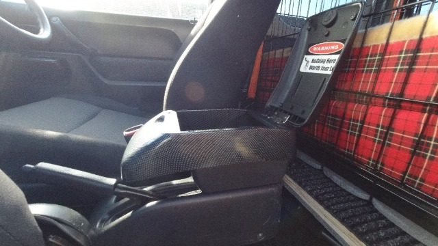 Old arm rest on new cup holder mounting box