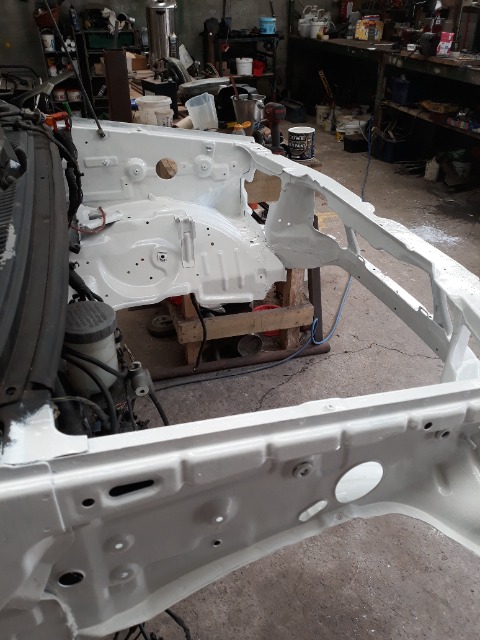 Moved to the other side of the car and sanded the filler and gave it a quick spray of primer to protect it until raptor paint later in the month.