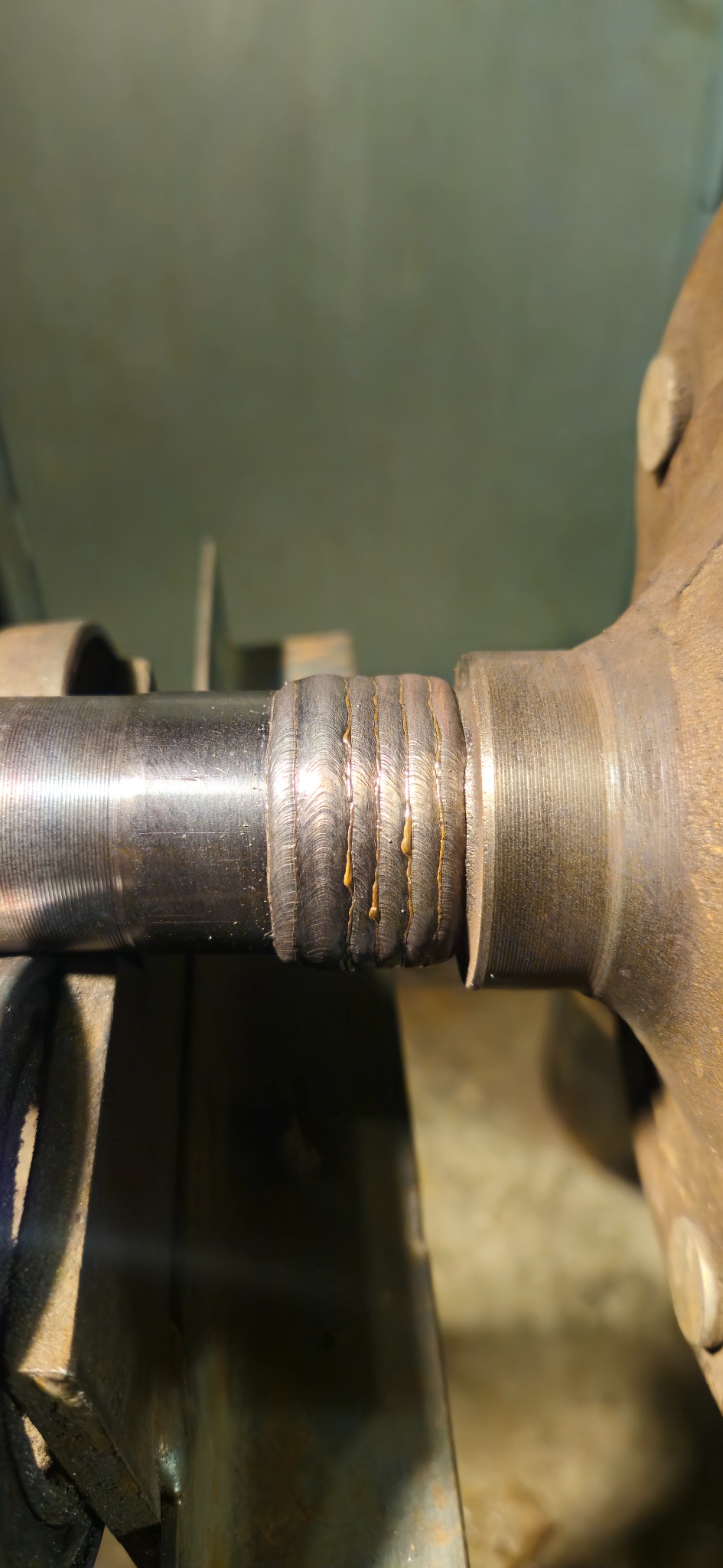 Cut the old bearing off, skimmed the bearing diameter, built up and remachined the bearing diameter. Didn't remember to take photos of the worn axle.