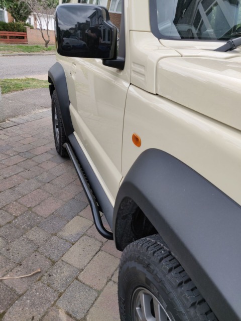 Revel in your new lardy Jimny, not only are the sills protected when off-roading, but also it gives extra protection from carpark door opening damage and gives you a handy step each side to reach roofbars/roofbox.