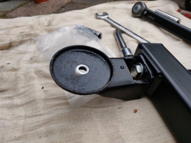 I used the trolley jack to lift the rear of the slider and hold it in place, with nut finger tight, while I aligned the front. The front body mount bolt doesn't expose a huge amount of thead until the nut is tightened, so I found it easier to go rear first, then front. Don't forget to include the mount plates above the brackets!