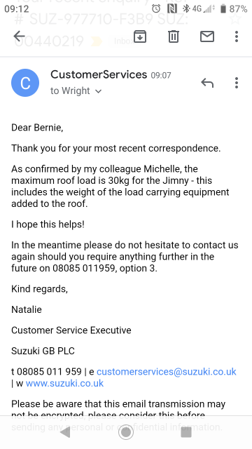Maybe somewhat naively (or stupidly!) I’d never considered advising my insurance about adding a tow bar, adding a roof rack or changing the tyre size, on Jimny’s that I’ve owned in the past... I suppose I just thought of them as accessories... anyway as a result of this thread I’ve just asked my insurance company, Direct Line, via their online chat... this is what they have replied..