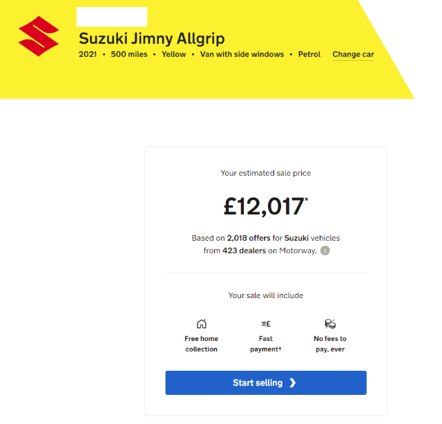 Unfortunately I had to trade in my 2020 SZ5 in as it wasn't powerful enough to pull my 950kg caravan. The deal was agreed 4 months ago and I got £25k against a new top of the range 4x4 Dacia Duster, they had to give me cash back. My Jimny is now their website for just under £30k.