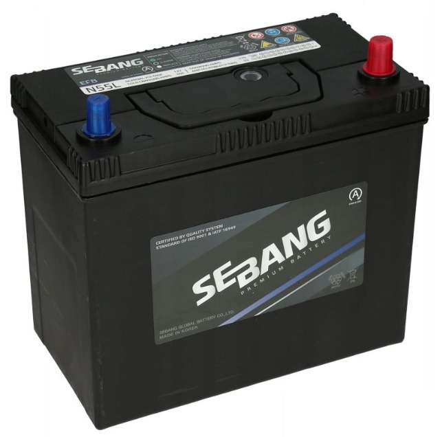 After considering all pros and cons I chose EFB battery which has 55Ah (+10Ah vs stock) and has almost same size as the original one. The model is Sebang EFB N55L 55Ah (L/W/H [mm]: 235 / 125 / 190).