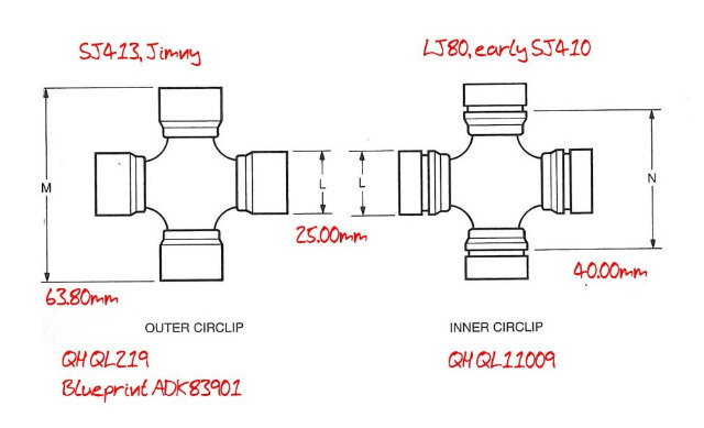 Suzuki use 25.0 mm bearing caps 63.80 mm length on Samurai & Jimny, with external circlips.