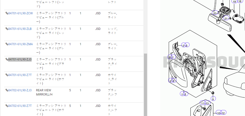 I've attempted to find the part number using this: www.amayama.com/en/genuine-catalogs/epc/...jb43w-5/interior/847 but when I do an image search for the mirror assembly (eg 8470176J90ZJ3) the images don't match the mirrors on my car.