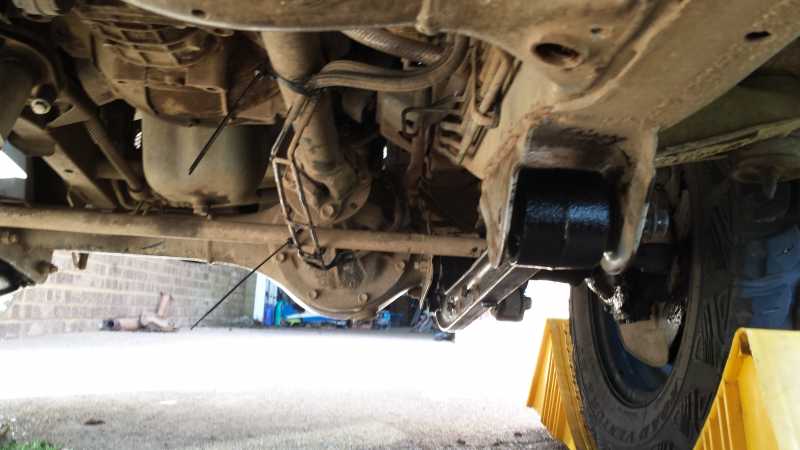step 5: undone the inboard front bolt for the radius arm (the next one along) and discovered that i couldnt pull the bolt out as it was hitting the shock! not sure if this is because it was up at the back so leaning forwards or what.