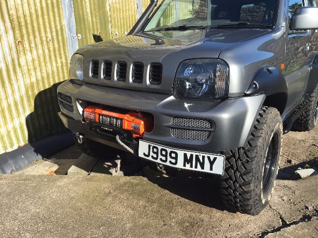 The hook on the winch is too big to fit into the jimnybits towing eyes so ive clamped it onto the original tow point underneath for now. I bought some D shackles, but they are either too small or way to big. Be handy for the tree strap or snatch block i suppose. Ive decided to put the cover on it when its parked up to keep prying eyes off it