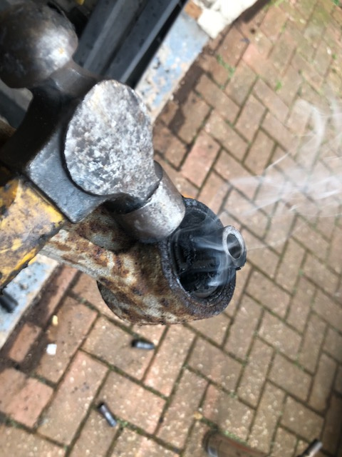 And tjem turn the arm over and grab the insert with a pair of mole grips and wrestle it out - again whilst it's still hot