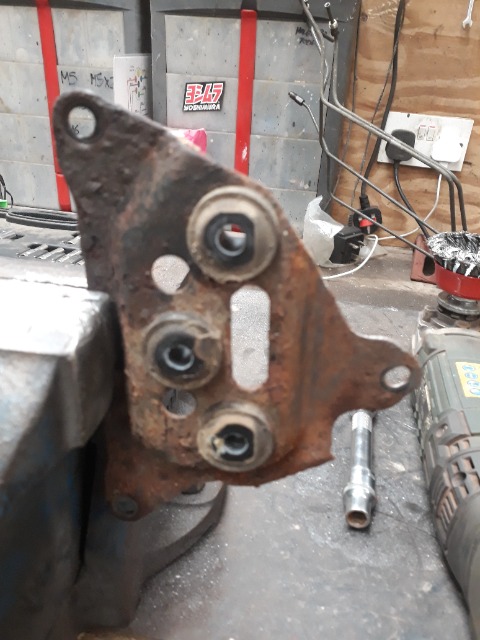 I have some more welding to do but couldn't get into the headspace today so I said I clean up the engine bay, clean up some spot rust and get some rust converter onto them.