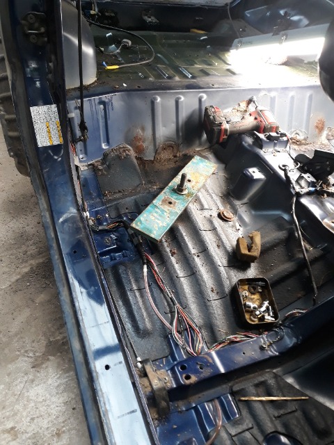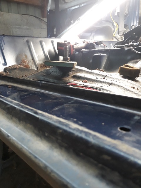 Sorted out driver side floor that got damaged with the tractor when I lowered the jeep off its side the time i used the bale handler to lift the jeep onto its side. What a muppet anyway. Timber prop got wedged under the floor as the weight of the jeep came down on it.