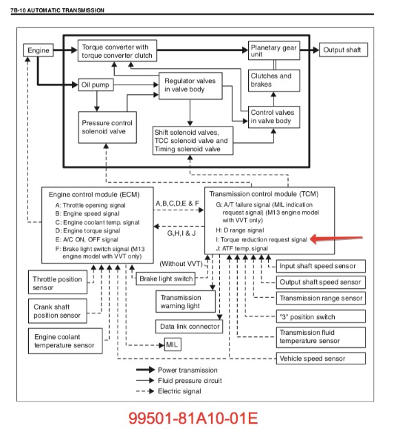 If it is JB43 2005+ then ECM+TCM communicate over TWO wires - red (terminal E118-7) and white (E118-