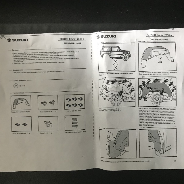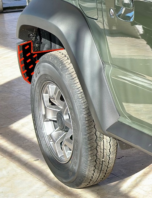 Here are some other photos of the Suzuki Russia ones fitted on another Jimmy, including the fronts which are fitted in place of the standard factory liners to provide more coverage (ignore the mudguards which are an additional Suzuki Russia item which I did not take):