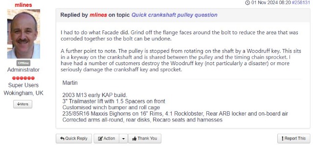 Replied by DrRobin on topic Quick crankshaft pulley question