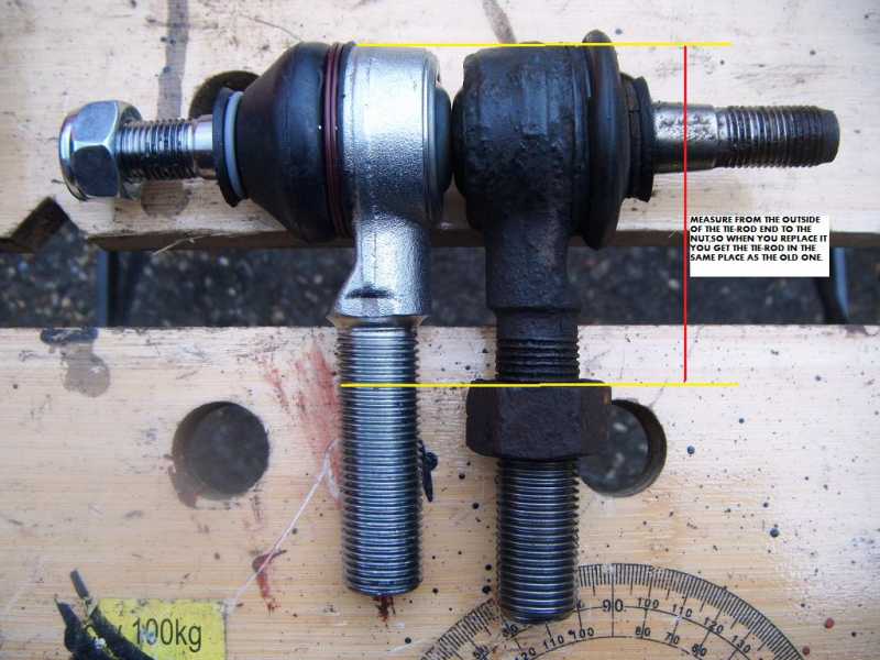 As you can see from the photo of the tie-rod ends, they have two different length threads so you will need to measure as in the photo, from the outside of the tie-rod end to the locking nut, so it fit in the same place as the old one on the steering bar.