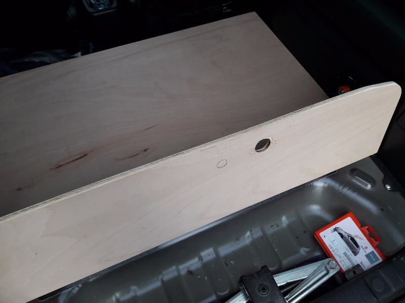 Then cut my plywood floor from the cardboard template I'd made, including a piano hinged section to access the jack and tools compartment. I have car carpet ready to cut and fit next weekend.