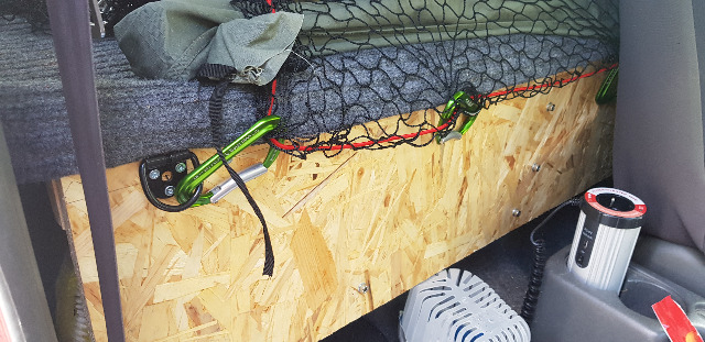 As seen, there are fasteners there for the cargo net. These two compartments are intended to store things I don't need normally, like tools. One compartment is for tools and such things. As of now I have one free compartment, that I might turn into a water container.