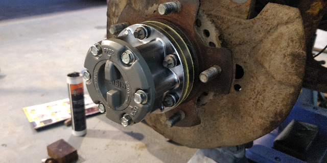 Other notes regarding the installation, I tought I was smart by not removing the spindle from the swivel housing and it worked great for disassembling, however putting it back together this way was very difficult and took far too much time time to get it just right. Also at this step it is a perfect occasion to replace the kingpin bearings and seals, for the work involved in my opinion it is false economy to not replace them all. Lastly for drilling the hole for the air fitting it is useful to put a piece of wood between the casing and the pinion so as not to hit the pinion with the drillbit like I did.