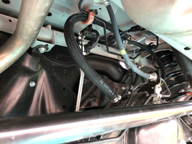 Rear pipework was run along the rear brake pipes (safest route). Front Pipework was run up into the engine bay, I just allowed the angle of the diff spigot to dictate where I ran the hose, because then there is no chance of kinking. It was then clipped to the front radiator mount.