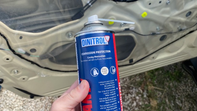 With the door trim off I took the opportunity to spray some corrosion protection inside the door.