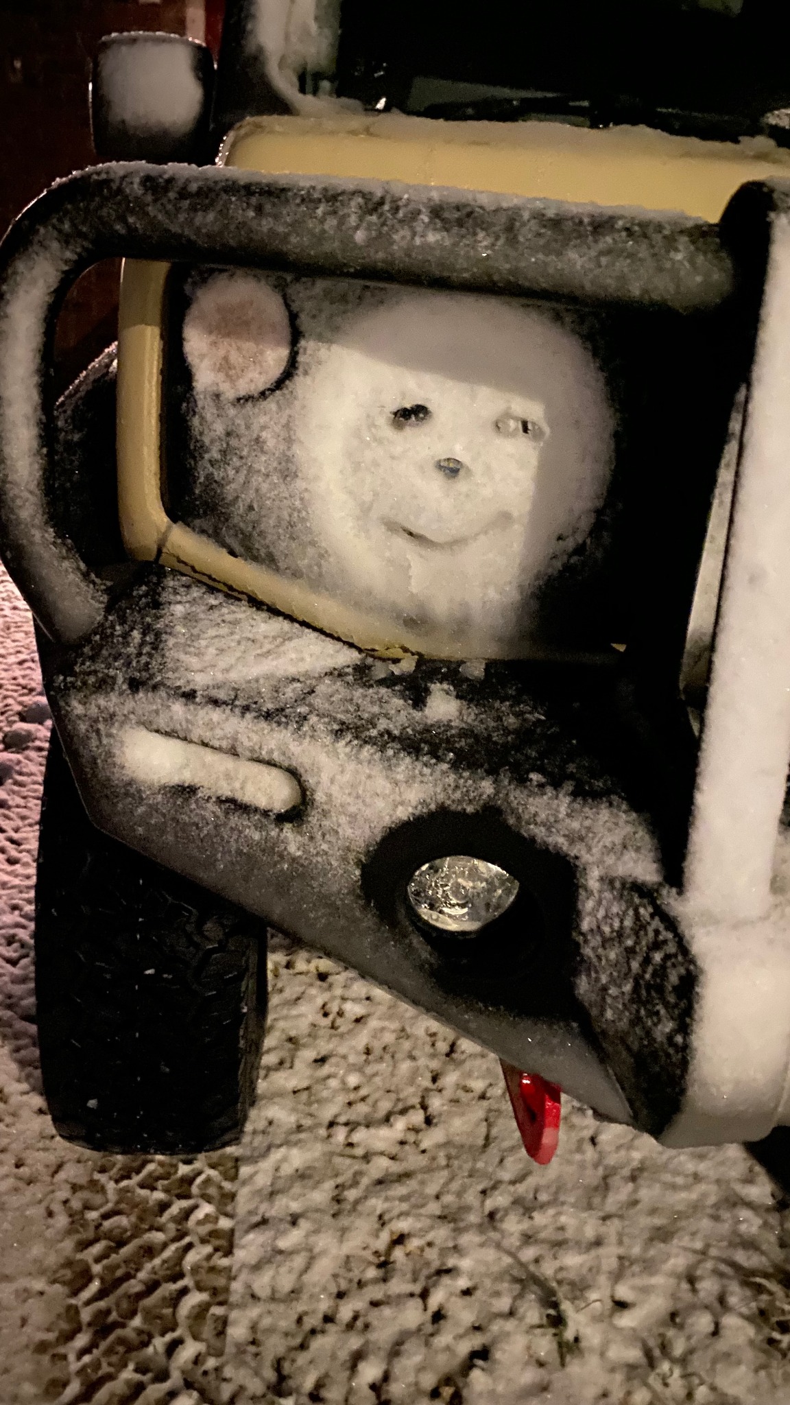As you can see, a very big downside to LED lights, no real heat out the front. The headlights, lightbar and spots all covered in snow massively reducing output and light. Thankfully I have foglights and had on purpose kept them as halogen, you can see how they kept themselves free of snow, offering more than enough light to safely drive by.
