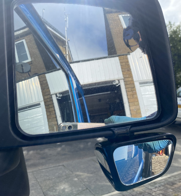 A pair of cheap blind spot mirrors, you can see all four wheels (just)