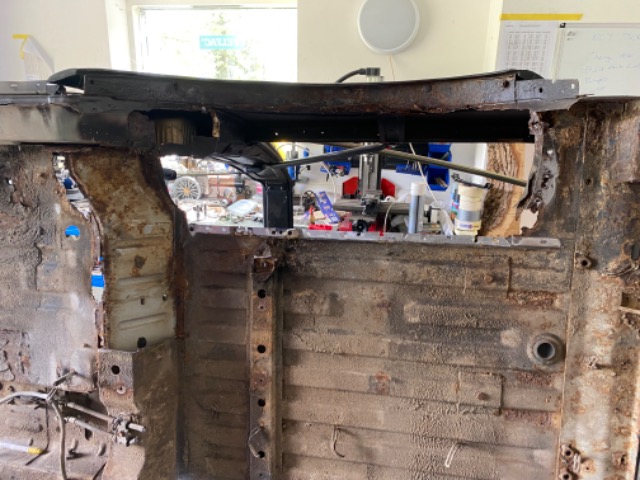 Next challenge is the front of the sill that is sitting wide of the floor.. may fillet it, may cut it free and pull it in with a ratchet strap.