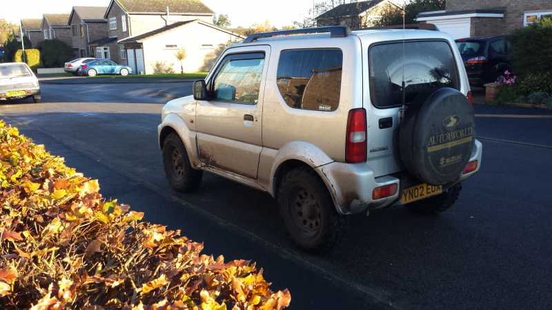 Silver Jimjam with slight lift, Kumho KL71's and a cb ariel on the spare wheel carrier.